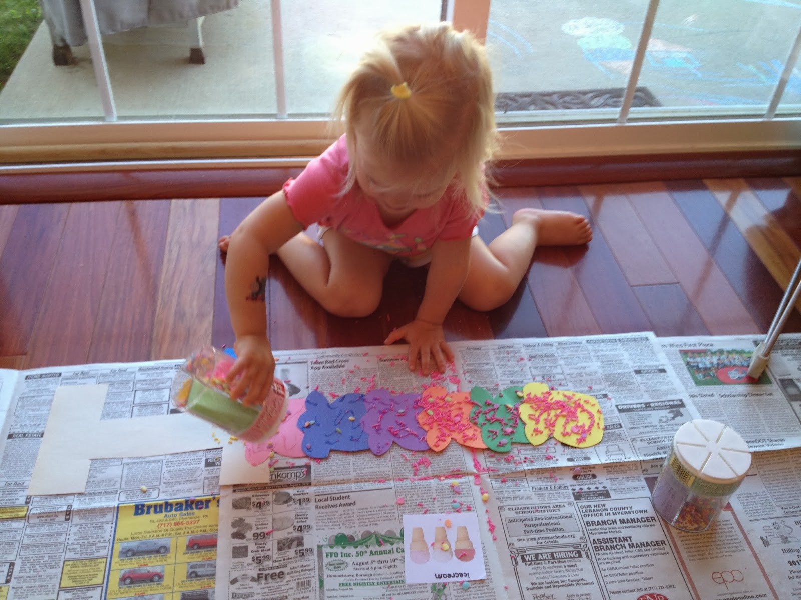 I think Kieryn's favorite ice activity was throwing it and watching it break. We did a letter/number matching game with those that broke free from the ice blocks.
